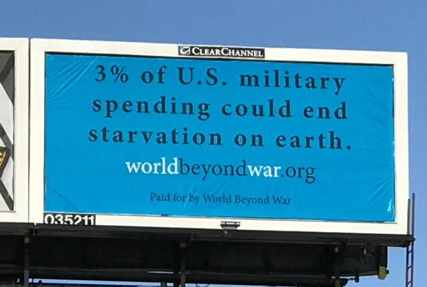 The nonprofit organization World Beyond War has put up a billboard in Baltimore stating that “3% of U.S. military spending could end starvation on earth.” Of course, a much smaller percentage could heat Baltimore schools, where students are attending classes in unheated rooms.