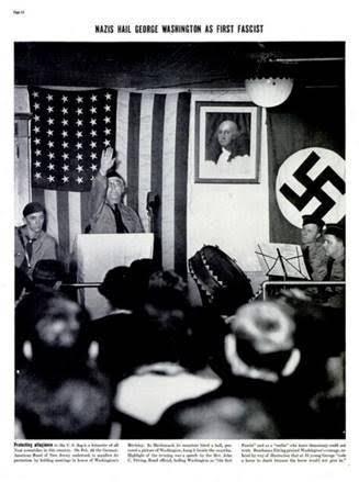American Nazi Party Rally (22,000 pro-fascist Americans were in attendance) at Madison Square Garden (Feb 20, 1939). (DAWA is the abbreviation of the German name for the German-American Protective Alliance - DeutschAmerikanischer Wirtschaft Auscbutss). Note the two American flags flanking the Swastika. Perhaps some of the cultural progeny of the participants pictured were part of the “Unite the Right” fascist rally at Charlottesville in 2017.