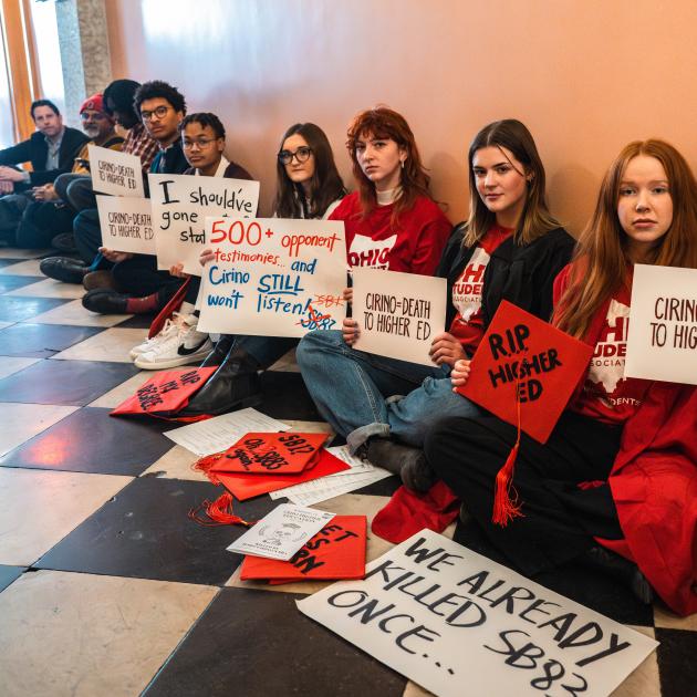 An October 5, 2025 gathering at the Ohio Statehouse to demand an end to the genocide in Gaza.