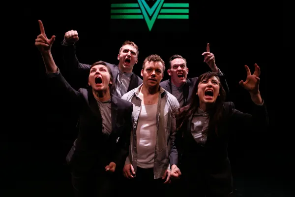 Now, 13 years later The Gang’s current Orwellian rendering has switched its focus to “‘Fake news’ is the big one, ‘alternate facts,’ everything is rewritten,” Sullivan told me at a reception after the opening of the show wherein the job of protagonist Winston Smith (Will Thomas McFadden) at the Ministry of Truth is to rewrite and re-edit records of the past in order to conform with the Party’s ever-shifting, current version of events. As Orwell wrote in 1984: “Who controls the past controls the future. Who controls the present controls the past.”