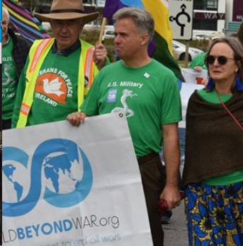 David Swanson marching with World Beyond War banner