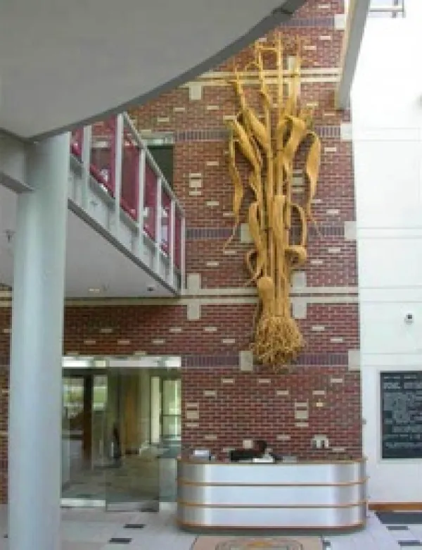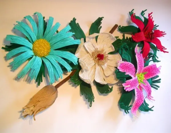The 18 foot tall corn plant, called King Corn that I made for the Ohio Department of Agriculture in Reynoldsburg was significant for me because it was the first time I'd used wire inside of the coils. This marked a turning point in my art and initiated my floral collection. The scale of the piece is humbling and amusing.