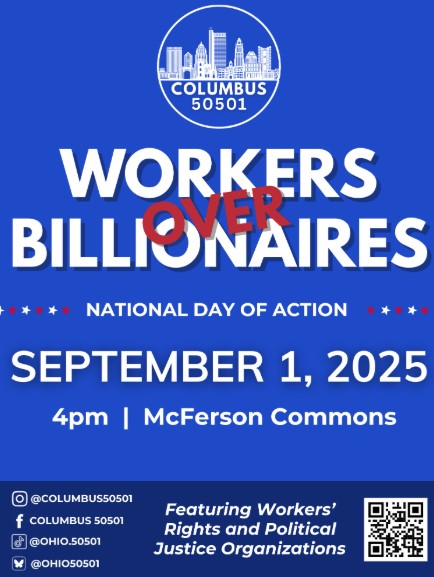 Labor Day, September 1st, 2025, people in more than 1,000 communities across the 50 United States, Sweden, and the Territory of Guam will gather for Workers Over Billionaires. This is a national day of action sponsored by the same coalition that brought you this year’s May Day National Day of Action. Participants will creatively and nonviolently protest the billionaire takeover of our democracy and the government’s abandonment of the American working class.