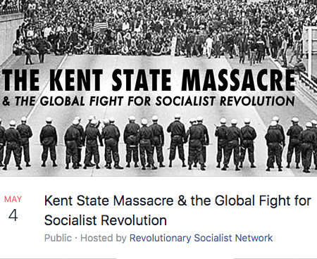 Monday, May 4, 2020, 7:00 PM. Kent State Massacre & the Global Fight for Socialist Revolution. An International Online Commemoration. On May 4, 1970, National Guardsmen opened fire on unarmed antiwar protesters at Kent State University in Ohio, killing four students and wounding nine others. Within days there was further bloodshed with six dead in Augusta. GA, and two dead at Jackson State University in Mississippi, sparking a national student strike involving millions of students. May 4, 2020 is also the anniversary of the Haymarket events of 1886. The subsequent frameup and execution of anarchist and labor activists led to the birth of May Day. May 1 is the International Workers Holiday founded to fight for the 8-hour day, improved working conditions and an end to imperialist war. Join us May 4 in a revolutionary tribute to our martyrs, with an online, international memorial of opposition to imperialist wars, occupations, sanctions and austerity drives directed against the working class. Facebook.