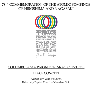 Sponsored by Mark Stansbery, Yoshie Furuhashi, and Rocco diPetro, and Columbus Campaign for Arms Control.