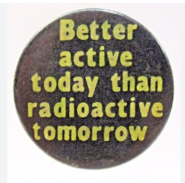 Button saying Better Active Today than Radioactive Tomorrow