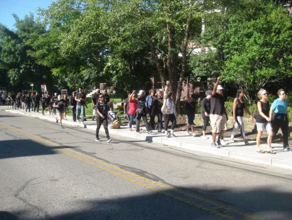 About 100 protesters kicked off the blackout by marching from Franklin Park to the King Arts Complex, where organizer Karla Carey explained the blackout strategy. “This weekend we’re asking that if you have to spend money, that you reinvest it in the black community, to keep the black community thriving.”