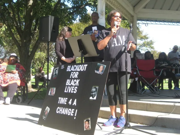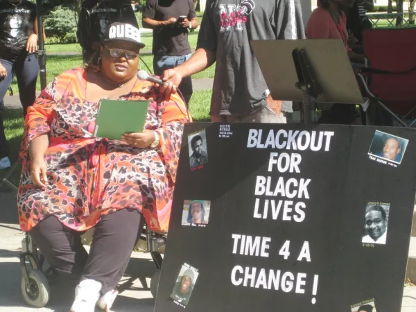 Adrienne Hood has participated in public demonstrations for her son Henry Green since June 15, less than two weeks after Green was killed by Columbus police. Early on, Hood’s words and demeanor reflected overwhelming shock and grief. At the blackout protest Hood’s grief was still evident, but her demeanor was fiery and her words expressed a steely determination.