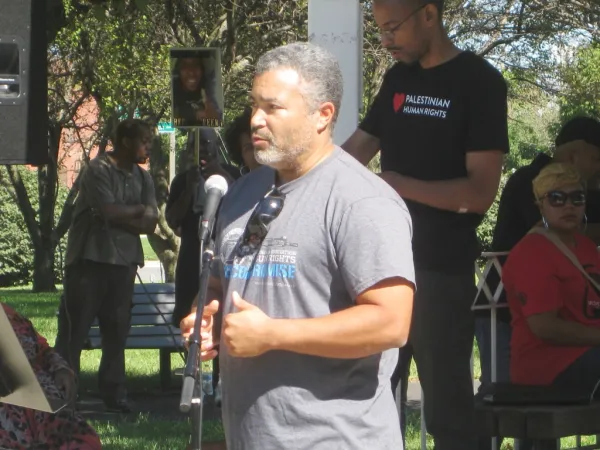Community organizer Michael Vinson spoke about the attempt by Columbus Citizens for Police Review to establish a citizens’ review board to hold police accountable for misconduct. “The ballot initiative failed because few were willing to back it up with on-the-ground support, and City Council and the local Democratic Party are hostile to direct forms of democracy,” he said.