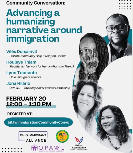 Ohio Immigrant Alliance is helping to host a community conversation for the grassroots, advocates, and policymakers on February 20 from 12-1:30pm ET, to share how we can advance a more humanizing immigration narrative in Ohio, during a difficult time for everyone.