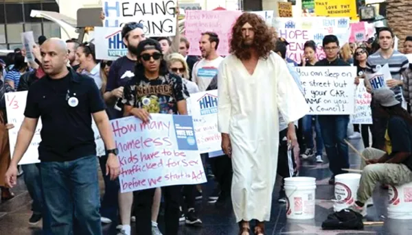 The film also shows some of the homeless people the organizers are advocating on behalf of. There are scenes of L.A. City Council meetings and measures regarding the housing emergency, which the film’s organizers criticize for not being properly funded and not doing and going far enough. L.A. Mayor Eric Garcetti is glimpsed at an event when one of those ballot measures is passed, but is not interviewed onscreen per se. Hizzoner’s Homelessness Policy Director Alisa Orduna is, however, interviewed as are County Supervisor Mark Ridley-Thomas and City Councilman David Ryu.