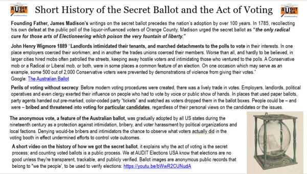 Fellow Democrats, the problems may be complicated, but the solution is simple-- it’s transparency. TRANSPARENCY IN ELECTIONS IS ESSENTIAL to preserving our Democracy. We MUST provide evidence to the public that CERTIFIED RESULTS ARE ACCURATE. This bill does that.