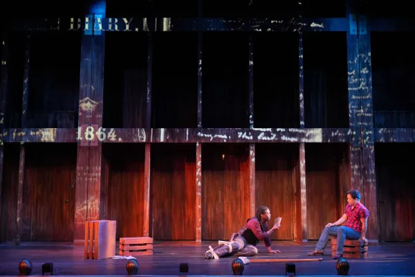 Sondheim’s (who of course wrote the immortal lyrics for West Side Story) eerie musical explores these criminals and their motives with insight, wit, pathos and varying degrees of historical accuracy. The ensemble cast, deftly directed by EWP’s Producing Artistic Director Snehal Desai, with musical direction by Marc Macalintal, wreak their mayhem from an imaginative multi-level set designed by Anna Robinson, which is periodically emblazoned with projections designed by David Murakami with assistance from Sam Clevenger. The singers are accompanied by a live sextet, enhancing the overall production values of this musical, which had originally opened Off-Broadway in 1990 for only 73 performances, but was revived on Broadway in 2004 where it snagged five Tony Awards.