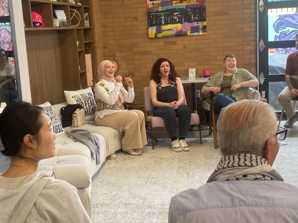 Attendees enjoying the afternoon poetry reading at Zora's House today presented by three Palestinian guests. Photo credit CFP writer Mahmoud El-Yousseph