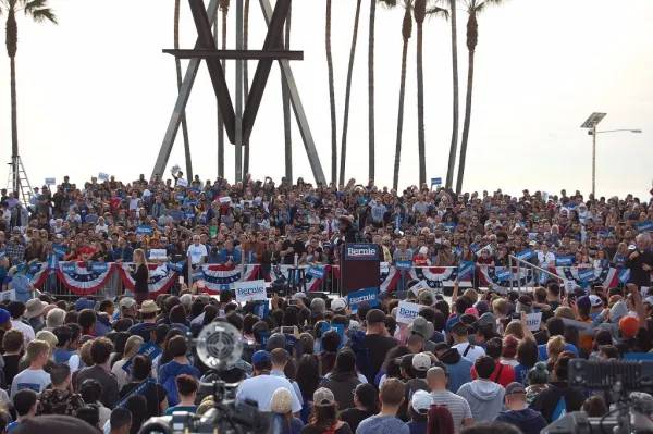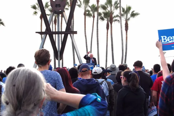 When presidential candidate Sen. Bernie Sanders addressed a Dec. 21 California campaign rally he railed against “more extreme weather - Venice, Italy is underwater.” But with an overflowing crowd of more than 14,000 people assembled on the sand and boardwalk, the democratic socialist’s supporters flooded that other Venice - L.A.’s bohemian beach known for weightlifters, tattoo parlors, skimpily-clad sidewalk skaters and street performers.