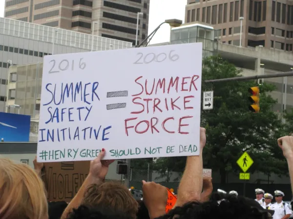 People’s Justice Project organizer Tammy Alsaada spoke to this backlash before the march on Thursday. “We are not against the police,” she said. “The Black Lives Matter movement is a movement for justice. We are not terrorists. We are not the enemy. We are your community members. We’re here to say to our police department that we want a full, independent investigation. We’re not going to give up until we get justice for Henry Green!”