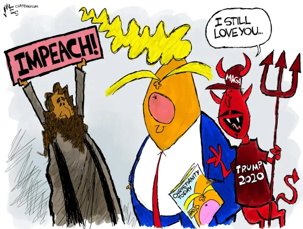 Even though Christianity Today (CT) came out for impeachment before Christmas, Trump’s die-hard MAGA fanatical white evangelical Christian base still seems to support him. ‘Tis the season for hypocrisy.
