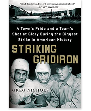 Many of us collect something, and know that feeling of finding that once-in-a-lifetime treasure. Or you’ve had that feeling of glancing down to find a $20 bill, a four leaf clover or something you’d been looking for but had given up. That’s what It felt like when, buying my monthly weight in books at the Half Price store, I happened upon Striking Gridiron, (Greg Nichols, 2014, Thomas Dunn Books).