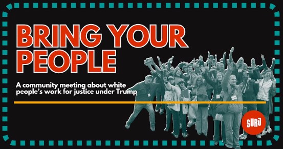 Join SURJ for a community meeting to get grounded together, get clear on our analysis of how we got here – and then get organized for the work ahead.