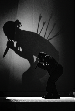 A series of images which looked from the school of Kara Walker appeared above the stages. New York-based artist Kara Walker is known for her candid investigation of race, gender, sexuality, and violence through silhouetted figures.
