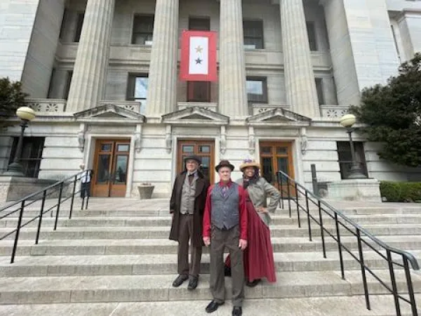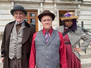 Activists dressed as Ida B. Wells and 1920s reporters pointed out to the crowd that citizens have the right to dissolve corporations.