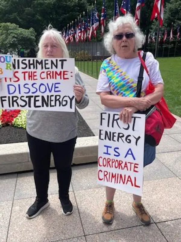 FirstEnergy Accountability Coalition members believe it’s time to hold FirstEnergy accountable in proportion to the scale of its historic admitted crime of a $61 million payment in 2021 to a nonprofit secretly operated by former GOP Speaker of the Ohio House Larry Householder (now in prison) and another $4.3 million payment to the state’s top utility regulator, Sam Randazzo, who was recently indicted and is now deceased. The bribes were intended to pass House Bill 6 (HB6), a $1.3 billion bailout of two FirstEnergy antiquated, failing nuclear power plants, which would have cost ratepayers hundreds of millions of dollars.