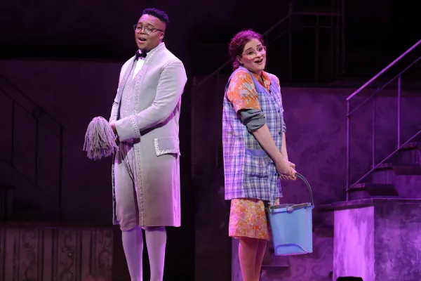 Pogossov’s Dandini, as the pretend prince, is a sheer delight to behold, and calls to mind other archetypal characters of the stage who are lowly born in an unfair, unequal world and yearn to have a more exalted status and fortune. First and foremost is the ancient Roman playwright Titus Plautus’ title character in the 191 B.C. play Pseudolus. The irrepressible Zero Mostel, who defied the House Un-American Activities Committee during the 1950s, made his comeback from the Hollywood Blacklist playing Pseudolus on Broadway in 1962 in A Funny Thing Happened on the Way to the Forum, which Stephen Sondheim, Larry Gelbart and Burt Shevelove adapted into a musical from Plautus’s original.