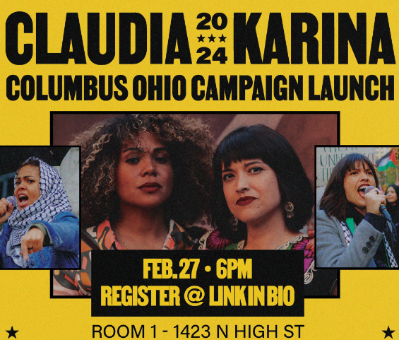 “Claudia and Karina [Claudia De la Cruz and Karina Garcia] 2024: Columbus Campaign Launch,” hosted by PSL [Party for Socialism and Liberation] Columbus