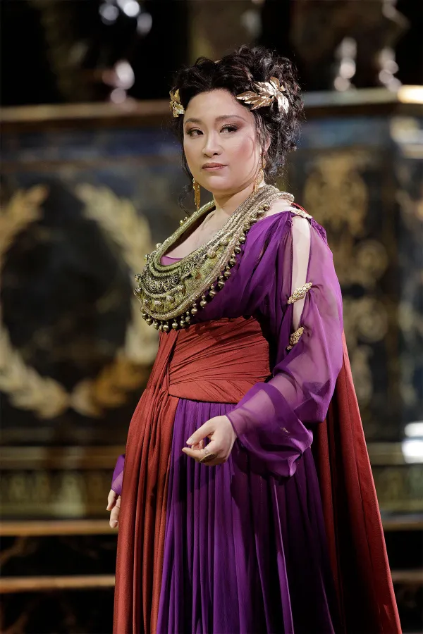 Other actor/singers such as Yu are unconventionally cast to play against ethnic type. And the fact that the bearded male characters Sesto and Annio are both played by female mezzo-sopranos is also noteworthy. (Perhaps this is a reference to Mozart’s 18th century use of castrato - you know, those no-nuts high-notes hitters.)