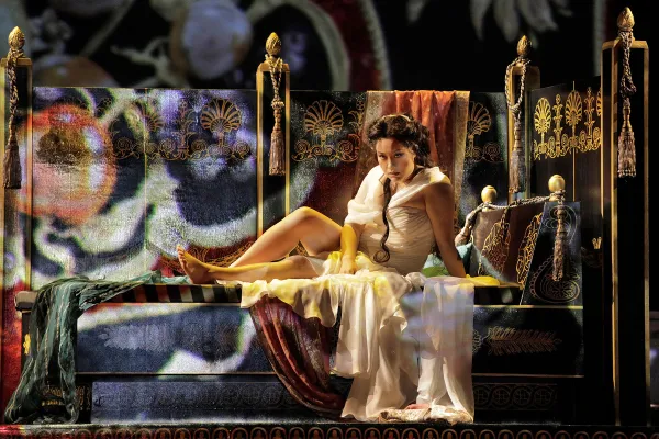 Wolfgang Amadeus Mozart’s The Clemency of Titus (La Clemenza di Tito), dramatizes part of the life and reign of the Emperor Titus Flavius Caesar Vespasianus Augustus, who ruled the Roman Empire from 79 to 81 A.D. This work of historically-inspired fiction with a libretto by Caterino Mazzola, based on an earlier libretto by Pietro Metastasio, vividly brings ancient Rome alive with exquisite costumes by Mattie Ullrich (which much to my sheer delight include, at long last, togas!) and stellar sets by Thaddeus Strassberger, who also expertly helms this colossal epic about the emperor who, among other things, completed the Colosseum. So let the operatic games begin!