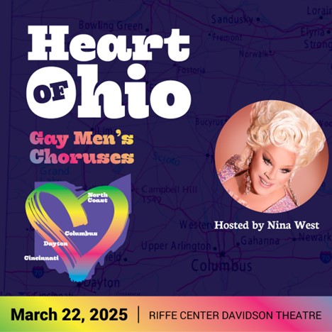 The Columbus Gay Men’s Chorus (“CGMC”) is thrilled to announce a collaboration with three other LGBTQIA+ choruses from Ohio for a special one-night concert called “Heart of Ohio.” The show is part of CGMC’s 35th concert season. CGMC will be performing alongside the North Coast Men’s Chorus (Cleveland), the Dayton Gay Men’s Chorus, and the Cincinnati Men’s Chorus on Saturday, March 22nd at the Davidson Theatre inside the Riffe Center in downtown Columbus.