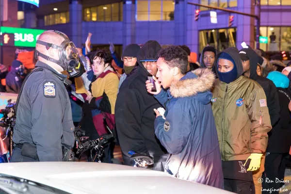 “There was no need for them to put on riot gear. There was no need for them to pepper spray us,” said Hana X Abdur Rahim. “A lot of Muslim and black children were there. We didn’t want to just leave them out there, because the high schoolers said this was their first time at a protest.”