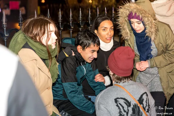 About 200 people occupied the south crosswalk at the intersection of South High and State Streets. “It was at the urging of our Muslim and immigrant brothers and sisters,” said Puja Datta. “They really wanted to do it, and we felt that we should support them.”