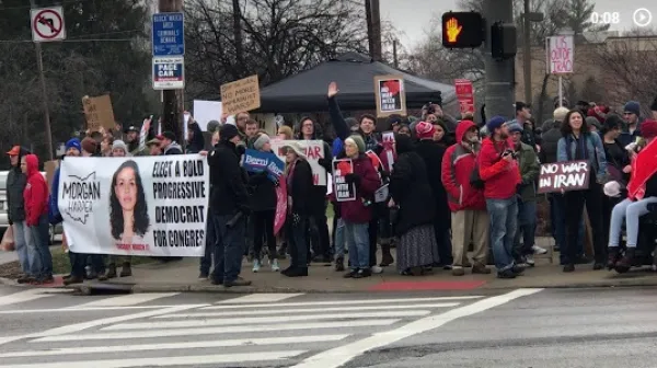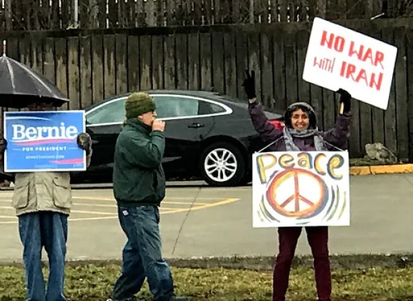 A hundred people gathered for an emergency anti-war rally at E. North Broadway and High Street on Saturday, January 4 at noon.