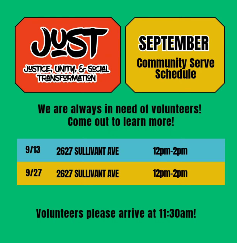 The community serve is held twice a month at 2627 Sullivant Ave. The service provides many essential needs, such as food, clothing, books, hygiene items, and much more. The best part is that it's