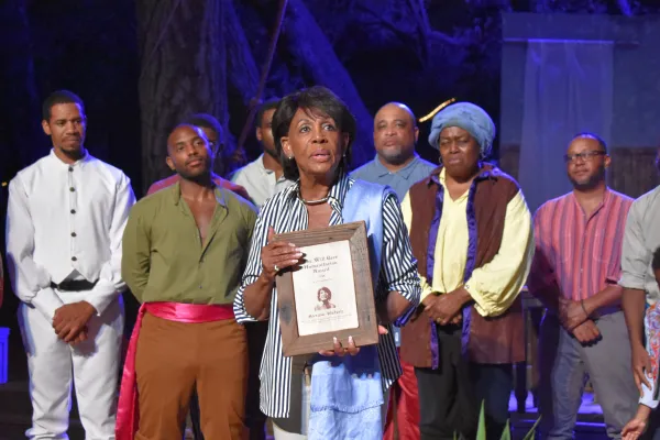 The Congresswoman was accompanied to WGTB by her husband, ex-NFL linebacker Sidney Williams, who served as Ambassador to the Bahamas, appointed by Bill Clinton, and by staffers and a security detail. Aristotle wrote about the unity of action, time and place in drama and rarely has anything been more organic than Maxine Waters’ being honored at a play about an island she is so intimately linked to - and also because she is one of the boldest public critics taking the Trump coup to task. In particular, the Trumpsters are irked that she is demanding that they actually be held accountable for their actions and policies.