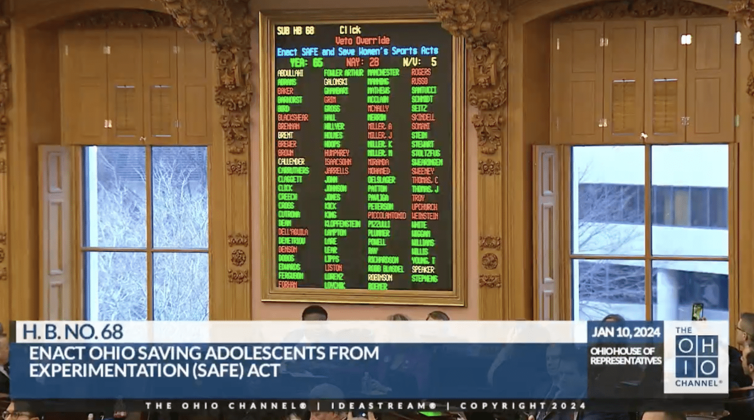 Members of the Ohio House voted 65-28 to override Gov. Mike DeWine’s veto on Ohio House Bill (HB) 68 Wednesday evening – taking one step closer to banning healthcare for transgender people under the age of 18 and preventing transgender girls from competing in sports from kindergarten through college.