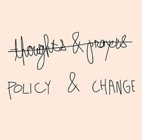 thoughts & prayers crossed out and words policy & change