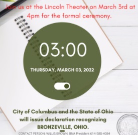 Effective March 3 at 4pm, the City of Columbus and the State of Ohio will issue a declaration recognizing Bronzeville, Ohio [that had been established in 1937]!