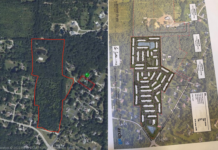 This rezoning would allow developer Treplus Communities to clear cut roughly 25 of 27.88 acres of forest in order to spend $40 million to construct 156 one- and two-bedroom single family rental units that the developer will market for residents aged 55 and older. The units will rent between $1,900 - $2,600 a month.