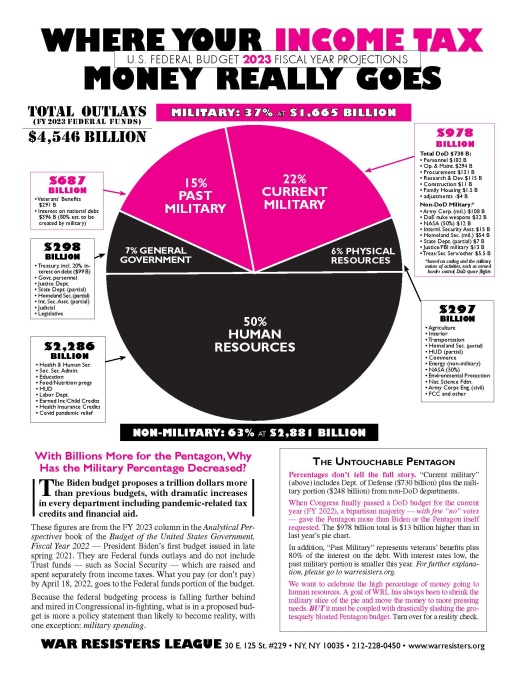 “Where Your Income Tax Money Really Goes” — War Resisters League pie chart, https://www.warresisters.org/resources/wrl-pie-chart-flyers-where-your-income-tax-money-really-goes