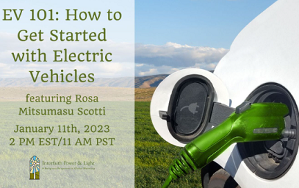 Please join us for this critical discussion as we learn how electric vehicles can help us save money, protect public health, and safeguard our Sacred Earth. Hear from leading EV consumer advocate Rosa Mitsumasu Scotti as well as IPL staff members about the countless benefits of EVs!  If you can't make this time, please register and you'll receive a follow-up email after the event with a recording. Interfaith Power and Light.  More information and registration here