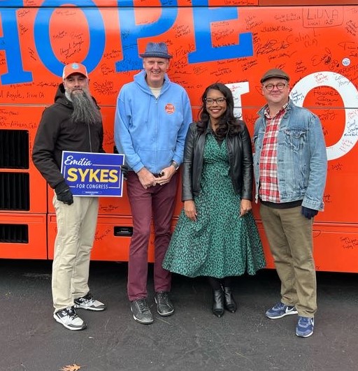 Vote Common Good's Doug Pagitt (wearing the blue fedora) this week met with Ohio Democrat Emilia Sykes who's running for Congress against Madison Gesiotto Gilbert a former Trump staffer.