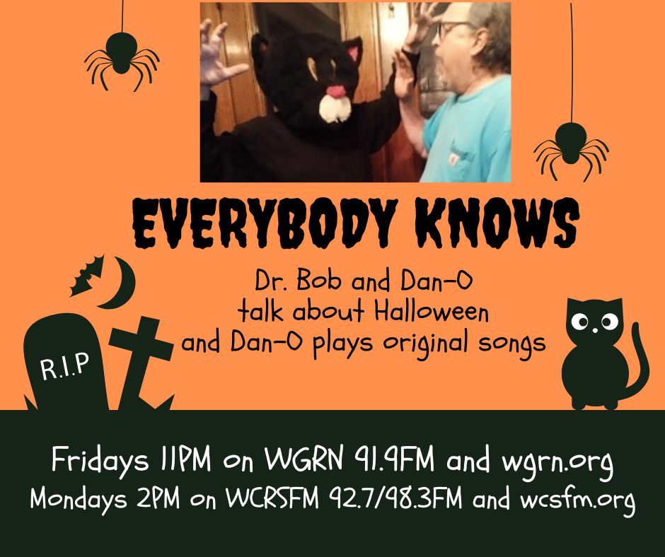 This week on Everybody Knows with Dr. Bob and Dan-o, Dan plays his original songs and talks about his video and event for Halloween.