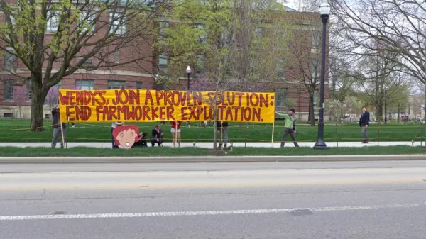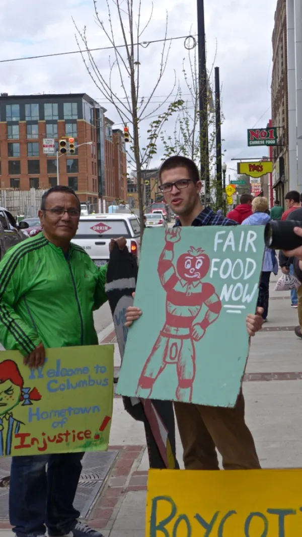 Fair Food‬ friends and allies gathered on Monday, April 20th at 11:30am to support the Ohio State Student/Farmworker Alliance and Coalition of Immokalee Workers' Boycott on Wendy's! The crowd wanted to show Wendy's that Ohio Fair Food will not stop till they sign the ‪#Fair Food Program‬.