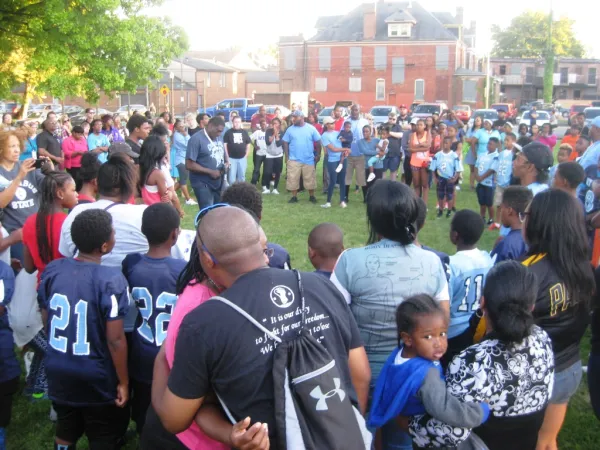 On Thursday evening family, friends, and neighbors of 13-year-old Ty’re King gathered in a field on South 18th Avenue in the Near East Side, close to where King was killed by Columbus police Wednesday evening. Over 200 joined the vigil, including the Columbus Day Stars, King’s middle school football team.