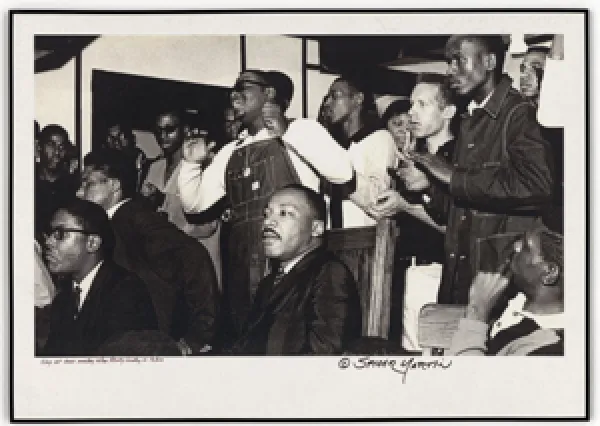 Photograph of Martin Luther King Jr. at Mass Meeting after Bloody Sunday in Selma