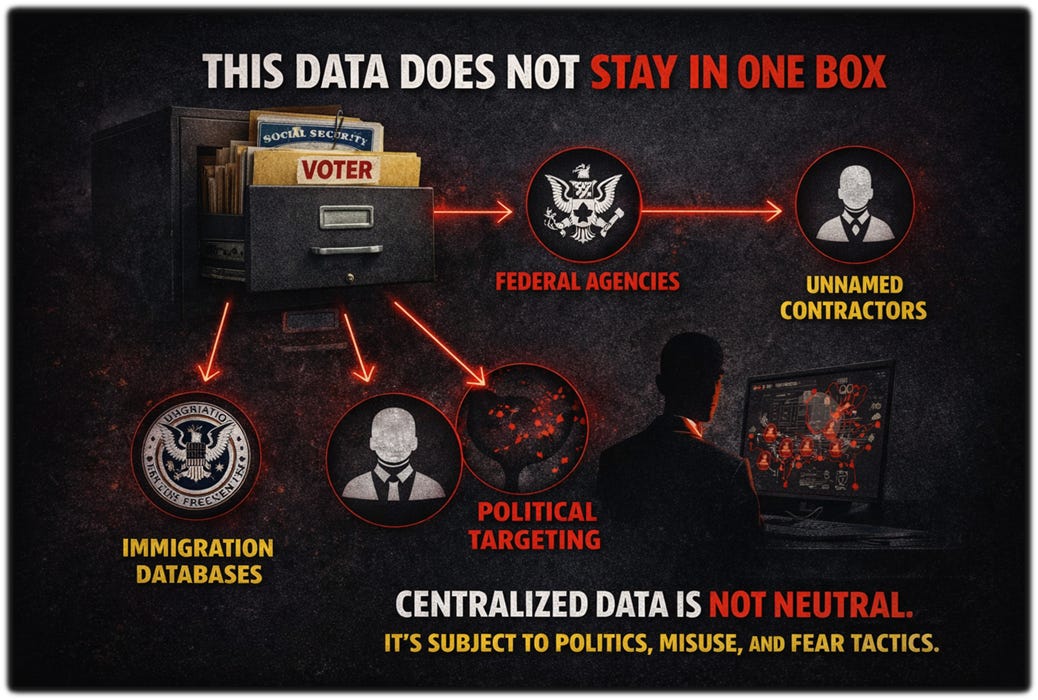 What is new is centralized authority.Centralizing sensitive voter data creates risks that go far beyond election integrity: