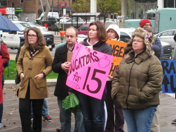 Ohio Federation of Teachers president Melissa Cropper described the impact of low wages on children’s education. “I’ve heard from countless parents who want to be involved in their children’s education, but they can’t make it to the parent/teacher conferences or after school events, or help children with their homework, because they’re having to work two or three jobs just to make ends meet,” she said.