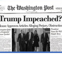 Newspaper headline for Washington Post saying Trump Impeached